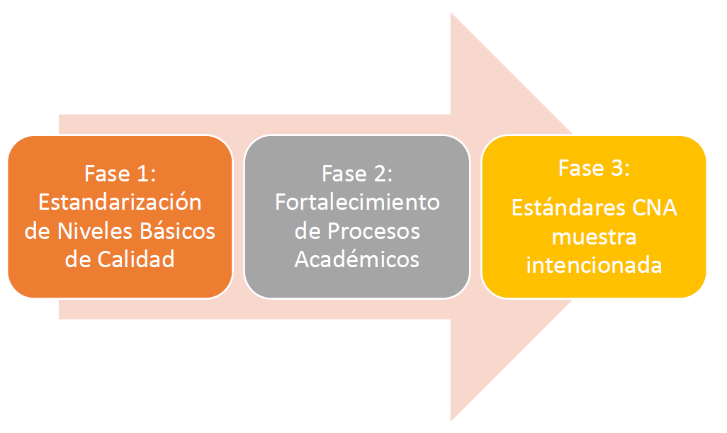 La fase 1 se desarrolló entre agosto 2024 y enero de 2025, cuyo objetivo fue estandarizar los niveles básicos de calidad (magíster y especialidades de salud). Se orientó principalmente a aspectos formales.